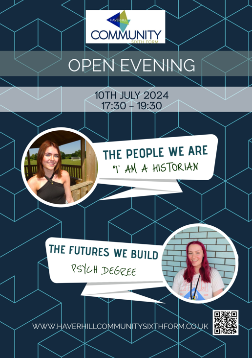 Come and see what makes Haverhill Community Sixth Form so special at our open evening on Wednesday 10th July, from 5.30pm to 7.30pm.